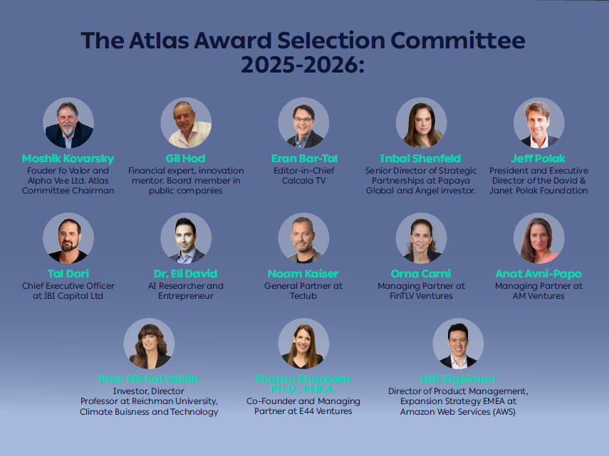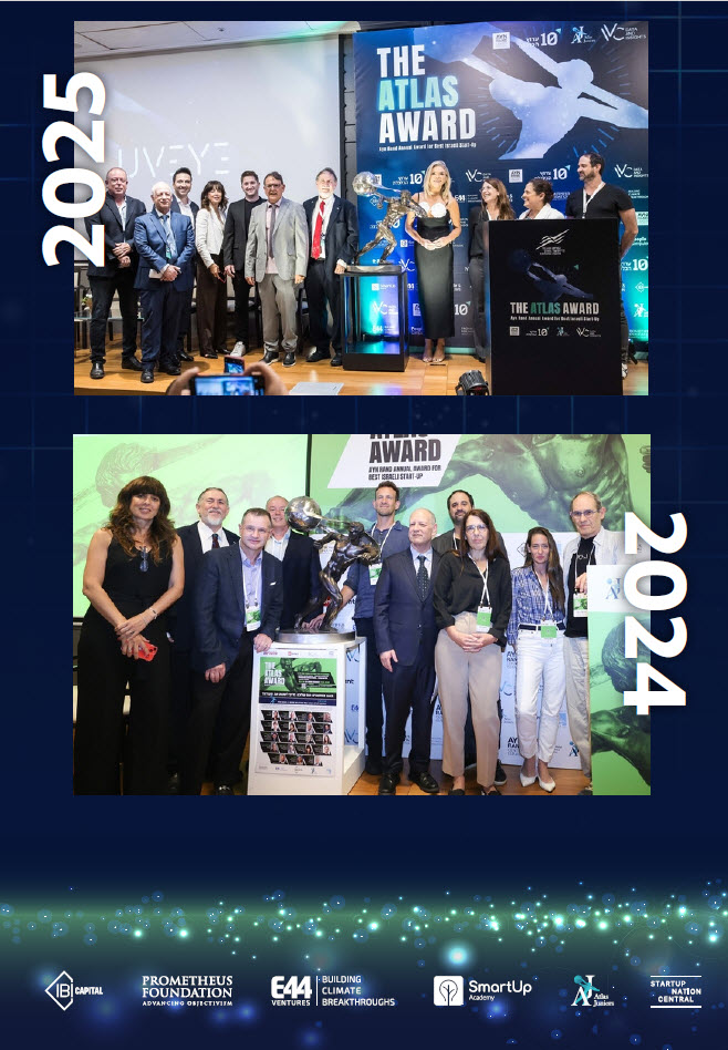 The Atlas Award, widely recognized as the “Israeli Oscar of Entrepreneurship,” is presented as a $100,000 sculpture, created by acclaimed sculptor R. Minns (Z”L), symbolizing the mythological Atlas carrying the world.